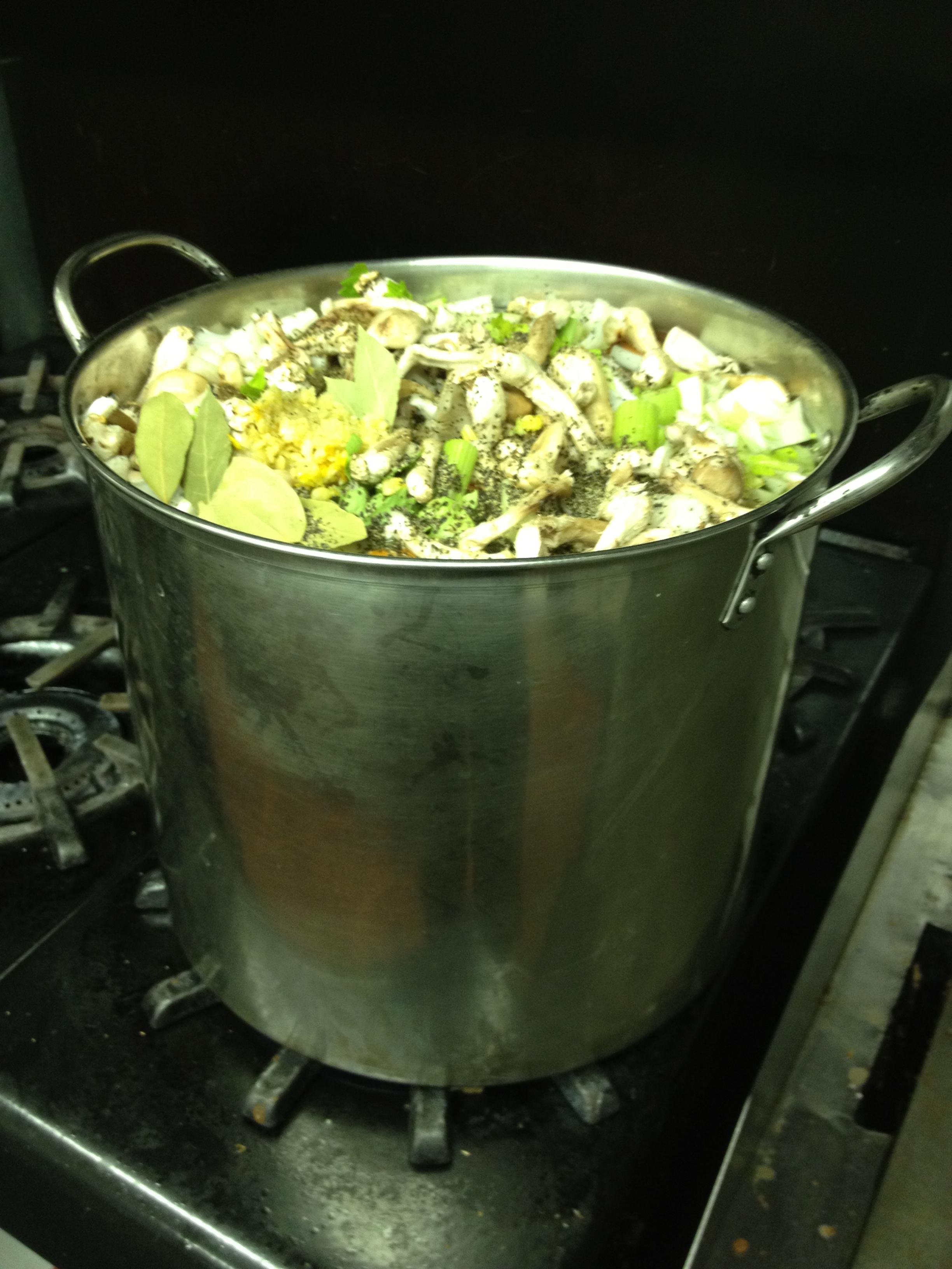 Mushroom Stock for the Mushroom Risotto Posted on March 22, 2013 by Carmen's Bistro Pieces of shiitake, oyster, & portobello mushroom simmered w/ onions, celery & carrots. Strain, then make risotto with the broth, adding butter, cream, garlic & seasoning. And love. You gotta have love. And seconds. You gotta have seconds, too. Share: Click to email a link to a friend (Opens in new window) Email Click to share on Tumblr (Opens in new window) Tumblr Click to share on Facebook (Opens in new window) Facebook Click to share on X (Opens in new window) X Click to print (Opens in new window) Print Click to share on LinkedIn (Opens in new window) LinkedIn Click to share on Pinterest (Opens in new window) Pinterest Click to share on Reddit (Opens in new window) Reddit Click to share on Pocket (Opens in new window) Pocket Like Loading...