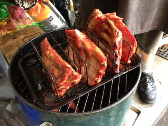 A slow fire and the smell of spareribs smoking.