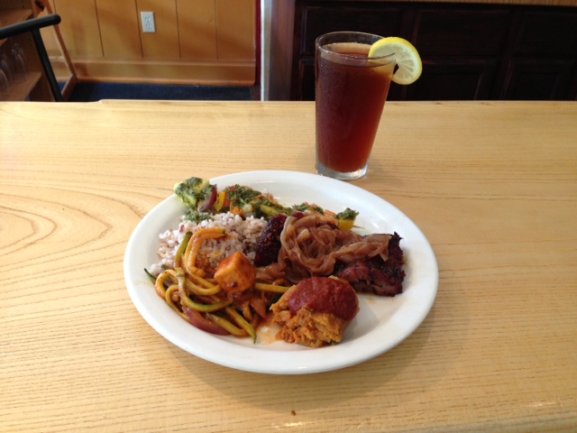 Sampler Plate! Posted on July 5, 2013 by Carmen's Bistro Clockwise from the front: –Crispy Tofu w/ sautéed veggies –Brown Rice (comes with all) –Shrimp Kebab –Short Rib –(Half) Chicken Tamale Share: Click to email a link to a friend (Opens in new window) Email Click to share on Tumblr (Opens in new window) Tumblr Click to share on Facebook (Opens in new window) Facebook Click to share on X (Opens in new window) X Click to print (Opens in new window) Print Click to share on LinkedIn (Opens in new window) LinkedIn Click to share on Pinterest (Opens in new window) Pinterest Click to share on Reddit (Opens in new window) Reddit Click to share on Pocket (Opens in new window) Pocket Like Loading...