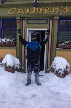 I know it looks like snow But really, the Hot Spiced Cider is on us! If you take the time and trouble to come in, it’s the least we can do! Jim just spent a couple hours clearing snow around the block, clearing fire hydrants, helping get six cars out. Why? It’s what neighbors do. Of course, he couldn’t have done it without our neighbor Warren, who kindly lent his snowblower. Around and around it goes, and don’t forget to pay it forward!
