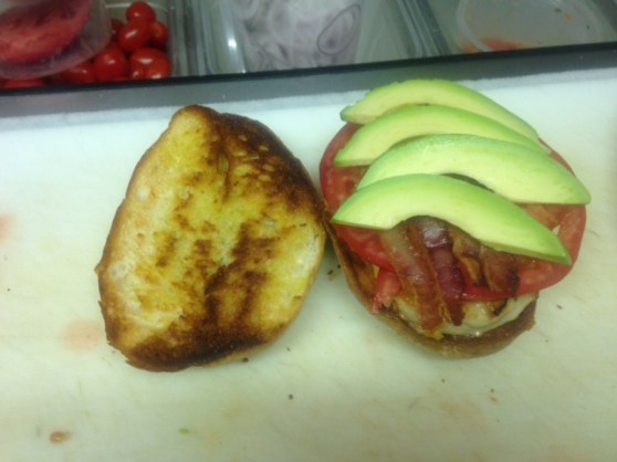 Chicken BLAT in the making Posted on August 28, 2014 by Carmen's Bistro Just look at that luscious avocado! All it needs is a topper of lettuce and a slice down the middle and it’s done, another scrumptious Chicken BLAT! Share: Click to email a link to a friend (Opens in new window) Email Click to share on Tumblr (Opens in new window) Tumblr Click to share on Facebook (Opens in new window) Facebook Click to share on X (Opens in new window) X Click to print (Opens in new window) Print Click to share on LinkedIn (Opens in new window) LinkedIn Click to share on Pinterest (Opens in new window) Pinterest Click to share on Reddit (Opens in new window) Reddit Click to share on Pocket (Opens in new window) Pocket Like Loading...
