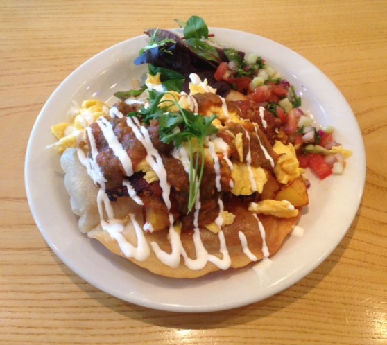 Tostadas con Huevos Posted on January 17, 2015 by Carmen's Bistro Take a tostada— whips, I meant MAKE a tostada— then savor on the toppings. Home fries, chorizo or veggie hash, cucumber pico (chopped & pickled w/ tomato & cilantro), lime creme, ranchero sauce & avocado. So many flavors blended so well! Share: Click to email a link to a friend (Opens in new window) Email Click to share on Tumblr (Opens in new window) Tumblr Click to share on Facebook (Opens in new window) Facebook Click to share on X (Opens in new window) X Click to print (Opens in new window) Print Click to share on LinkedIn (Opens in new window) LinkedIn Click to share on Pinterest (Opens in new window) Pinterest Click to share on Reddit (Opens in new window) Reddit Click to share on Pocket (Opens in new window) Pocket Like Loading...