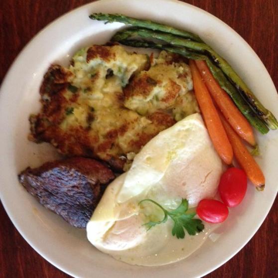 Easter Special, tomorrow till they run out: The finest GMO – free Filet Mignon, grilled to perfection, with Potato Pancake, Grilled Vegetables and Two Eggs cooked your style.