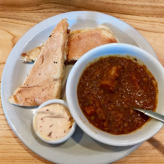 Cubano Sandwich and a bowl of Veggie Flamenco. Spicy and savory!