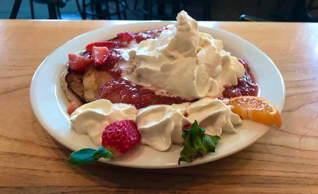 With fresh strawberry-orange compote and your choice of Whipped Cream or Vanilla Yoghurt