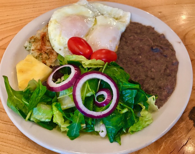 Top them with a couple of eggs, either breakfast meat or mashed black beans like me, and a side salad; maybe even slathered in guacamole (and we make a mean guacamole)